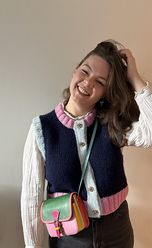Korsvika Sweater Vest: The pattern comes with a separate document describing a sweater vest (knit in the round without a button band) of the same measurements.