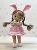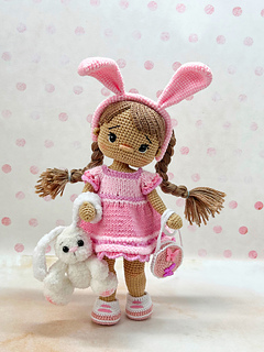 • 4 elements of removable clothing (dress with tulle, panties, shoes, hair band with ears and flowers), hand bag and a little bunny toy