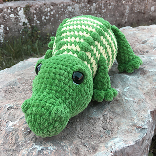 Here comes my Croco Kalli! It is crocheted completely, without sewing! You can crochet it in all green or with cheeky stripes.