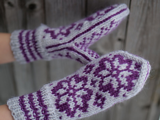 Oppskriften har en størrelse som kan endres ved å justere strikkefastheten slik at vottene kan passe både herre, dame og barn.