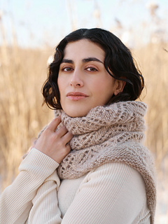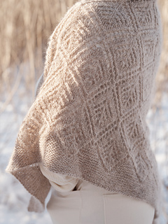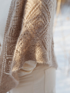 The Kuuse shawl (named after the Estonian word for spruce) is inspired by the rich heritage of Haapsalu knitting. The shawl’s delicate leaf motifs are designed to reflect nature’s beauty, to preserve tradition, and offer a meaningful knitting experience to makers of all levels. The shawl is worked with two strands of yarn held together — a light woollen yarn and a silk-mohair. You can easily adjust the number of repeats to make a shawl to suit you and your yarn combination.