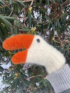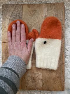 The pattern consists of 52 stitches. Knitting gauge 26 stitches = 10 cm. The mittens are knitted in Rauma fine wool and then felted in machine.