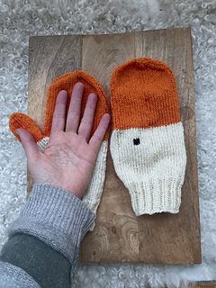 Mönstret består av 52 maskor. Stickfasthet 26 maskor=10 cm. Vantarna är stickade i Rauma finull och sedan tovade i maskin.