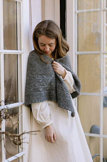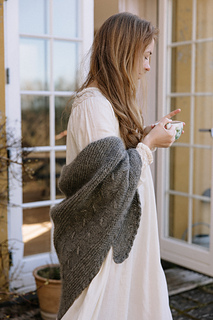 The shawl and name Kvist (Twig in Danish) was inspired by the winter view from my studio. In front of my window grows a beautiful oak tree and behind it you can see bare fields rippled from ploughing. The world seems dormant during winter and the colors are a mix of browns and greys. This quiet period of the year calls for warm shawls wrapped around the shoulders while sipping tea indoors.