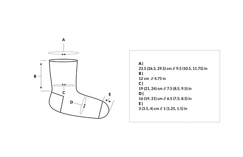 to fit 19 (21, 24) cm // 7.5 (8.5, 9.5) in foot circumference
