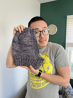 - Yarn weight: Super Bulky (Malabrigo Rasta, lots of unique colorways. Example knitted in Plomo 043)