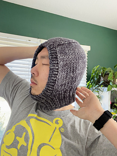 This balaclava is knitted in one piece, using just one ball of Super Bulky yarn. Merino wool is used to make the fabric soft to your face. The wool will not only keep you warm, but also ventilate well under a down jacket in a windy winter weather. Wear it as a balaclava, neck warmer, hood or a fashion statement in a color that speaks YOU!