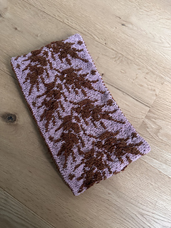 This cowl is knit in two connected layers. The outer layer is knit following the chart. The inner layer is knit in stockinette stitch in the two colors MC and CC.
