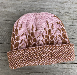 This hat is knit in two connected layers. The outer layer is knit following the chart. The inner layer is knit in stockinette stitch in the two colors MC and CC.