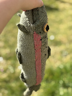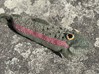 • la partie rose de la ligne latérale gagnerait à être tricotée avec un fil vert en plus pour se fondre …