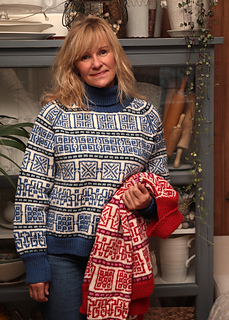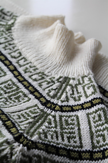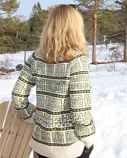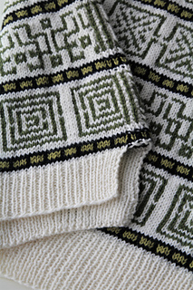Yarn requirements: see last page for colour suggestions Colour 1:5(6)6skeins= main colour Colour 2: 6 (7) 7 skeins= ribs and labyrinth motifs Colour 3: 2 (2) 2 skeins = «grid» Colour 4: 1 (1) 1 skein = grid filling