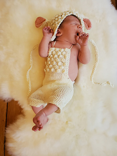 The bonnet and the ears are knit flat.
