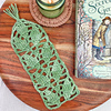 This pretty lace bookmark measures approximately 8.5 inches tall x 3.5 inches wide.
