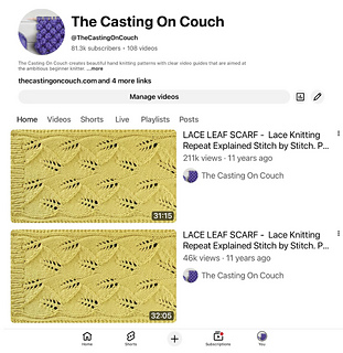 This 16 stitch and 20 row repeat is explained row by row and stitch by stitch. A waste yarn technique is demonstrated to give this beautiful lace pattern an even and symmetrical appearance to both ends.