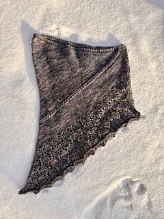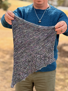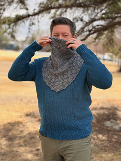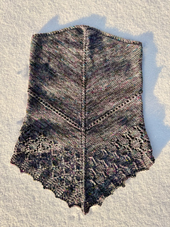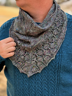 The Laced Bandit cowl is knit top-down and starts out as a simple triangle before joining the ends in the round to add some neck-warming length. It is finished off with some fun but relatively simple lace for a lighter drape.