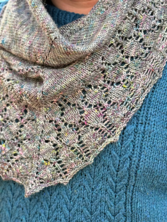 It knits up beautifully in solids and tonal colors. But the lace doesn’t get too lost in a balanced multi-color yarn, if that’s more your style.