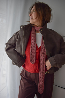 This elegant scarf features a delicate lace pattern that runs the entire length, creating a light and airy feel. Its long, thin design makes it a versatile accessory—perfect for wrapping multiple times or draping effortlessly for a touch of style. The lacework adds sophistication without being too complex, making it an enjoyable knit for both intermediate and experienced knitters. Ideal for any season, this scarf is a timeless addition to any wardrobe or a beautiful handmade gift.