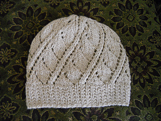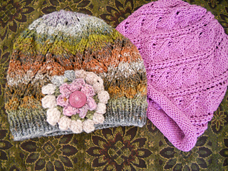 Love the leaves in spirals! This easy, yet beautiful lace hat is worked in the round and includes a basic lace chart and text instructions. The lace pattern is a 12 st, 8 row repeat, that looks great in the Noro or a solid color. Written for worsted weight wool blend, the hat also looks great done in a linen/cotton blend for the summer weather (see photos). Sizes are for adult S(M,L). Needles are US 6 and 7 circular (16”) and US 7 double points. Several substitute yarns are given, but remember to adjust your needle size if necessary. For all the yarns suggested one skein will suffice. I did some with a 4.5 gauge and some at 5 sts per inch. Both look great. Enjoy!