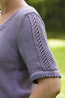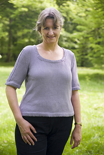 This is an easy-fitting tee, with a strip of lace in the sleeves. It is wider at the bottom hem, to sit neatly on the hips and the length is easily adjustable.