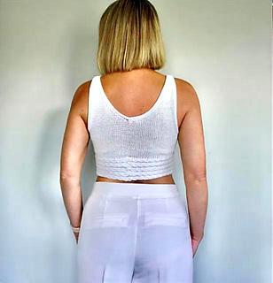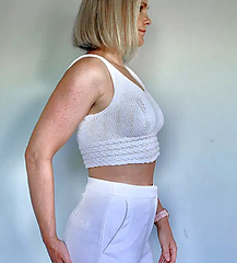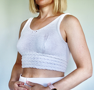 With a braided waistband and shaping on the top, this top fits close to the body and makes a nice silhouette with sweet details to make it interesting