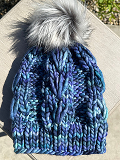 This beanie is knit in super bulky weight yarn and uses size US11/8 mm and US 13/9 mm circular needles. This beanie is knit in the round. This is a spin off of my Lake Erie Tote bag design and I’m so excited for it and I hope you all love the design. I love the look of this beanie and I’m so glad I get to share it with you all!