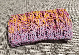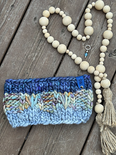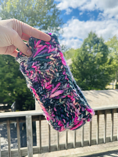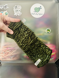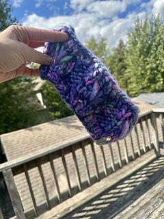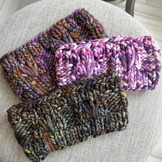 Super bulky weight (size 6). I used Malabrigo Rasta in Olive, Honey and Clover Fiber Co. in Birds of Paradise, Nella’s Cottage in Gemstone and Pocono Yarn Co. in Pond. Other examples would be Lion Brand Wool Ease Thick & Quick, Lion Brand Hometown or Homespun, BAAH Mammoth, We are Knitters The Wool or any size 6 yarn.