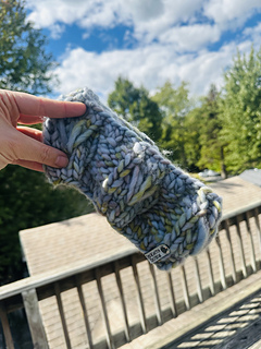 This headband is knit in super bulky weight yarn and uses size US 13/9 mm circular needles. This headband is knit in the round. This is a spin off of my Lake Erie Tote bag design and I’m so excited for it and I hope you all love the design. I love the look of this headband and I’m so glad I get to share it with you all!