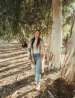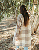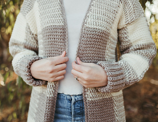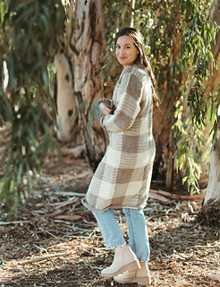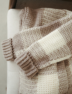 You’ll only need two colors for this project, because the squares that combine both colors to create the gingham pattern have a wonderful, almost tweed look to them. The oversized fit and tapered sleeves with folded-over cuffs make this the ultimate cozy statement piece.