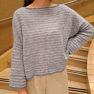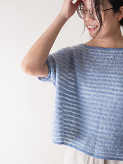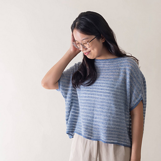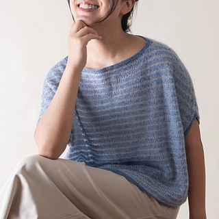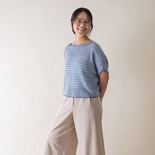 Lalang is a modern tee/pullover with microstripes and a satisfying, top down contiguous construction. The gauge is intentionally loose, so that you can substitute any lace, fingering, or sport weight yarn. Have fun with modifying yarn combinations for the stripes, or make the whole piece in one colour. Suggestions for yarn substitutions are provided in the pattern.