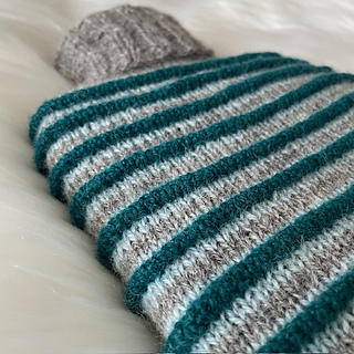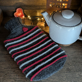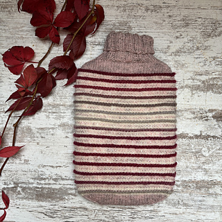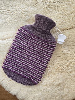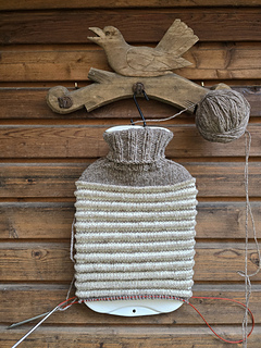 Durch die eingearbeiteten Biesen erhält der gestrickte Bezug weniger direkte Kontakthitze, mehr Strahlungswärme und gleich noch einen Massage-Effekt dazu. Das Kombinieren und Verarbeiten von größeren Wollresten und die Machart wird dir feine Strickstunden bereiten, bevor du die Wärme genießt oder an andere weiter verschenkst.