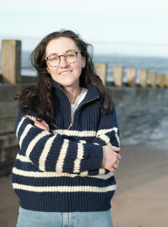 The Lanark Sweater is an oversized, drop-shoulder sweater, knit in Half Fisherman’s Rib or in Stockinette and finished with a sewn-in zipper. The sweater is worked top-down, first flat and then in the round.