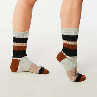 Winter always calls for homemade knitted socks. Our Langøya Socks knit in rib with fine stripes are knitted in our soft and warm Merino yarn, which is combined in four matching colors.