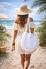 I have made this crochet bag using a cotton 10 ply yarn. Any 8-10 ply cotton yarn would be suited to the project just keep in mind an 8 ply yarn will give you a smaller finished bag measurement.