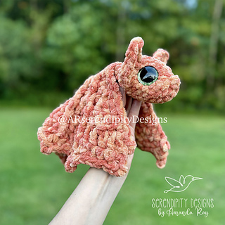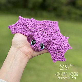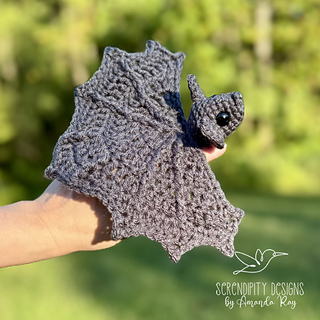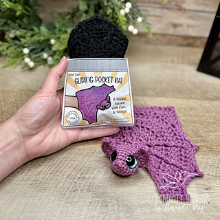 Make a Large Pocket Bat to glide and flap atop an adult-sized hand with optional finger loops/rings on the underside of the bat and/or to use as a pocket square! You can also use different yarns and hooks to make plushies, snugglers, and bookmarks!