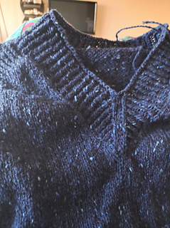 The Late Summer jumper is a relaxed, loose fit jumper worked seamlessly top- down. The design has long raglan sleeves with a modern ribbed cuffs. The jumper has a V-neck and a cropped hem with no waist shaping. The sweater is worked in two strands of yarn held together.