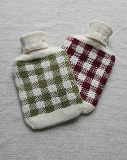 Knitted bottom up, working in the round, starting with Judy’s magic cast on, then using stockinette stitch which is increased using the m1l/r technique. The main body of the hot water bottle cover is made using 2 colour stranded colourwork, using magic loop is recommended. Decreases are then knitted in stockinette stitch using the ssk/k2tog technique. The neck is worked in 2x2 rib, like a collar, and finished using a 2x2 Italian bind-off.