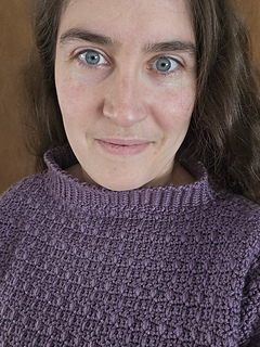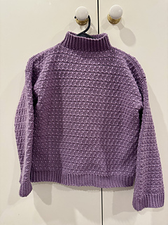 The Lavender Hollow Pullover is reminiscent of the season changes with its soft color and simple but elegant design. The pattern features a simple three-row repeat, incorporating a unique ribbing that adds a touch of sophistication. The neckline incorporates the same ribbing with a roomy mock turtleneck.