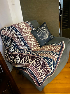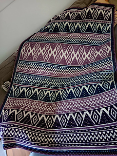 Throw measures (after blocking) 140cm x 195cm. This size is great for a single bed cover.