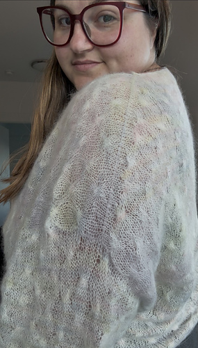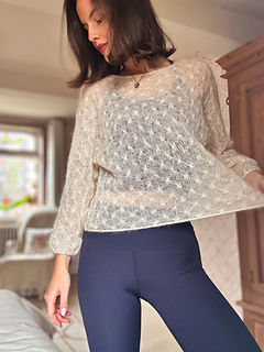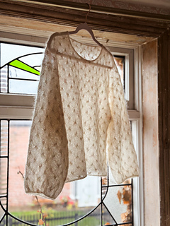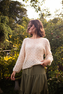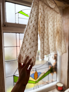 An ethereal, breezy knit with cables that turn into polka dots when the light shines through.