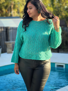 The Lavinia Sweater is #SizeInclusive to a bust of 62”.