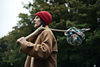 As shown in the photos, this beanie design can be worn either fitted, or slouched to various degrees. When worn fitted tightly around the top of the head, the crown appears to have a round shape. When worn slightly loosely, the hat appears to have a squarish flat-top style of crown. When loosened more dramatically, the hat resembles a typical slouchy beanie.