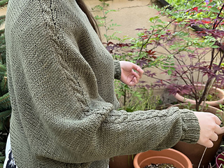 Une première torsade court d’un poignet à l’autre tout le long de la manche et des bordures inférieures. Une seconde torsade va du milieu du poignet , souligne l’épaule, se divise sur l’encolure pour terminer sur l’autre poignet en soulignant la deuxième épaule. Grâce à ces torsades, vous n’aurez pas de bordure supplémentaire ni de col à tricoter à la fin de votre ouvrage