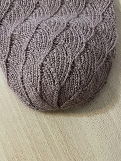 This beanie is worked seamlessly in the round from the brim to the crown. Elegant decreases at the top mirror the cable pattern, resulting in a clean, structured finish. The design is warm without being bulky, making it perfect for everyday wear.