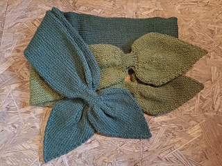 The leaf scarf comes in two lengths, a long and a short version. The long version will wrap around your neck twice while the short version will only do so once (see photos for reference).