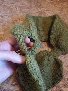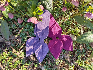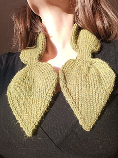 The leaf scarf is partially inspired by a pattern I knit when I was in my teens: the baby aviator scarf by drops design. I just thought the way this keyhole scarf could be fastened around the neck to be absolutely brilliant. Years later, I had the idea to combine this design feature with my own aesthetic. And so the Leaf Scarf was born. This scarf has little to do with the one that inspired it, but the idea of fastening it around the neck is the similar. There is a loop in one of the leaf stalks and the other leaf can be slid though to make the scarf stay in place.