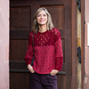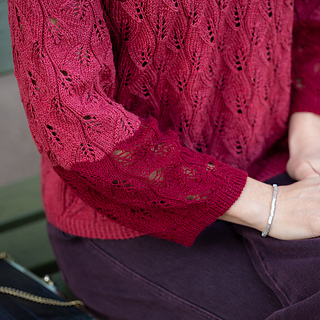 Der Pullover LEAF WHISPER wird Ton-in-Ton aus zwei Garnqualitäten von unten nach oben im dekorativen Blattmuster gestrickt. Bis zu den Achseln erfolgt die Arbeit in Runden, anschließend werden Vorder- und Rückenteil getrennt und in Reihen weitergeführt. Während das Rückenteil gerade abschließt, entsteht am Vorderteil mithilfe verkürzter Reihen ein formschöner Halsausschnitt. Der Körper beginnt mit dem leicht glänzenden Garn Saffira und wird im Schulterbereich mit dem feinen, flauschigen Alpaca Lace vollendet. Die Ärmel werden ebenfalls im Blattmuster von oben nach unten direkt in die Armausschnitte gearbeitet. Dafür werden mit Saffira Maschen aufgefasst und für die Ärmelschräge an der Unterseite abgenommen. Auch hier erfolgt der Garnwechsel zu Alpaca Lace, mit dem die Ärmel abgeschlossen werden.