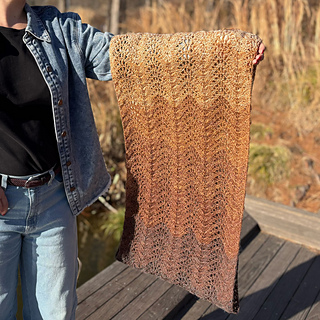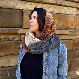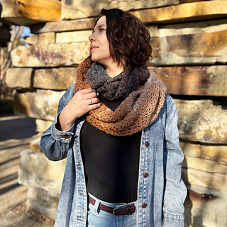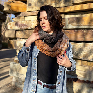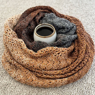 Leafdrift Infinity Scarf is an infinity scarf worked in a soft wave stitch using gradient yarn.