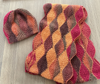 For the matching beanie pattern go to https://www.ravelry.com/patterns/library/leafy-knit-look-...