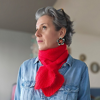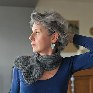 Leandre is a scarf worked in seed stitch with an elegant crossed construction, closed with knitted loops. You can choose to make it a single or double wrap around the neck. Approximately 186 yards of yarn are needed for a single wrap, or 230 yards for a double wrap.