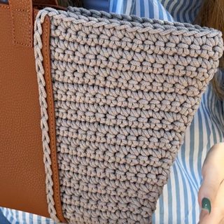 Crochet TOTE BAG with vegan leather inserts pattern written in English with US standard terms